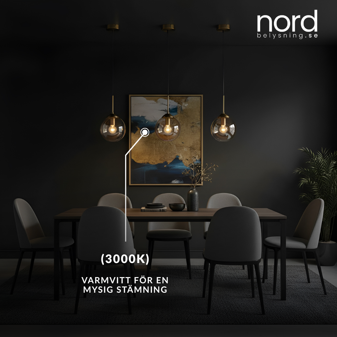 Pendellampa Glasglob LED Hängande Lampa i Metall för Matsal, Sovrum och Vardagsrum